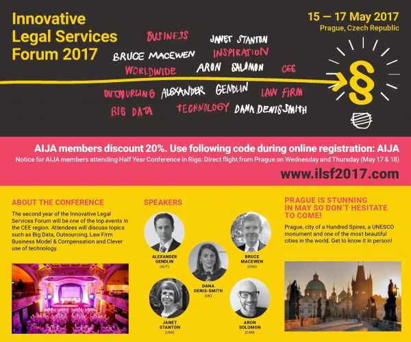 This year again AIJA supports the Innovation Legal Services Forum taking place in Prague next 16-17 May.