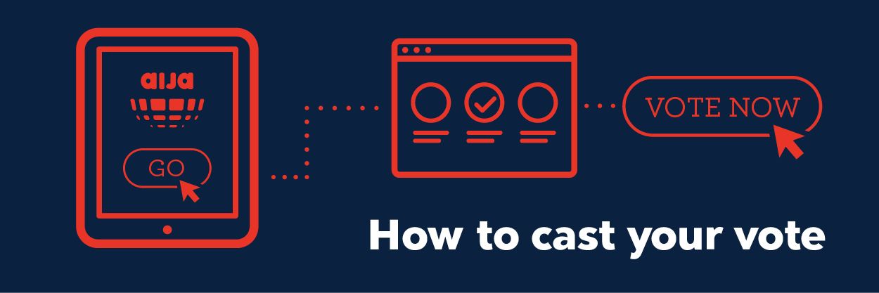 Step 1. Please log in on MyAIJA during the election windows and click on the link in the ‘AIJA ELECTIONS’ box you find on top of the home page. The link to the e-voting platform will only be available during the election windows.